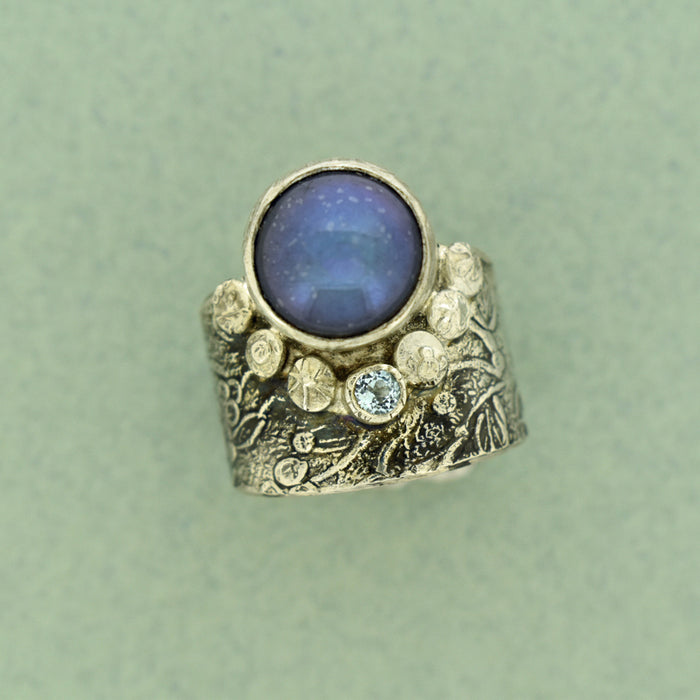 Peacock Pearl and Blue Topaz Silver Ring